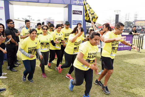 Sneakers? Check. Protein shakes? Check. Exercise? Check. Around 500 participants were pumped up as they took part in Hurdle Hawk partnered by The Telegraph on February 11 at Aquatica, organised by Abybaby Events and Skulpt. Though the sun was beating down, the participants gave their best shot at conquering a 3.5km race with 12 hurdles. Behind the console were DJs Mausam, Rimi and Merlin, who got the adrenaline pumping, while dance performances and jugglers kept the audience entertained. Food stalls kept everyone refuelled after the intense workout. t2 joined in the fun.