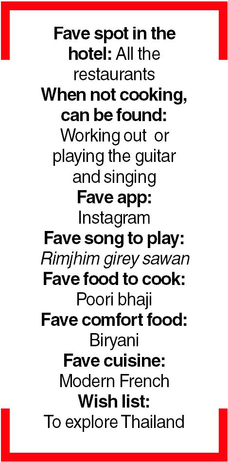 I joined this hotel during Durga Puja, which is a time when it’s super busy. So, I had to hit the ground running, starting my work from the very first day. I’m still learning because the scale of operation is large, with three restaurants, each different from the other — Italian, Indian and multi-cuisine.