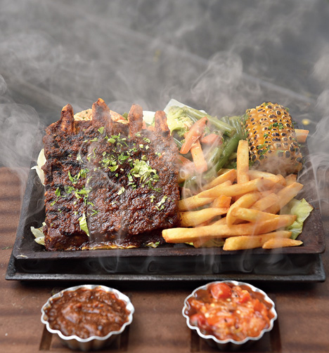 If you are a vegetarian, don’t go by the look of the dishes at this sizzler festival — what you think is pork ribs is actually a steak made with soya chunks and a lot of veggies!