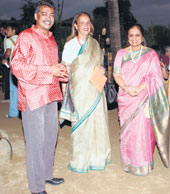 | Subodh Kerkar, Phiroza Godrej and Sarayu Doshi at Salt Water Grill; (above) a model shows off an outfit from Aigner’s new couture collection at Olive |