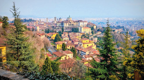 Ahead of me lay a charming tableau from a postcard — a hill crowned by domes, campaniles, palaces and towers. In the early 20th century, an architect had intentionally kept the height of the buildings in Città Bassa low. The Città Alta had to stand tall proudly above.