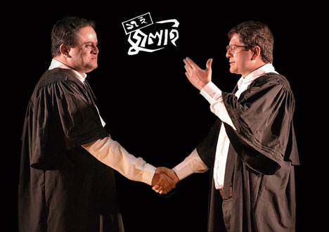 Written by Bratya Basu (left) in the wake of the 2002 Gujarat riots, Sateroi July tells the story of a group of youngsters falsely accused in a rape case and the courtroom drama that follows. Basu plays the protagonist, Rakesh Chatterjee, the lawyer defending the youths, while Biplab Bandyopadhyay (right) plays the prosecutor, Pankaj Parekh. Having wowed audiences back in 2004, the play has only recently returned to stage courtesy Thealovers, an organisation dedicated to producing one-act plays and participating in theatre competitions. The play, in its second run, is being directed by Debasish Dutta, who has also designed the set.