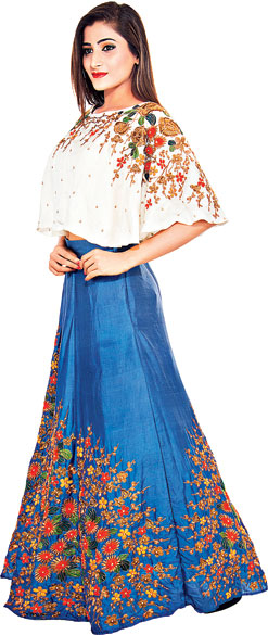 These companies are also offering bespoke services. “All you have to do is go through our ‘look-book’,” says Kumarpal whose ready-to-wear outfits can be spotted at Sasya and Simmaya, two Calcutta stores. “Our team of designers will help you customise your outfit. We use bamboo, soy and banana fibres for creating lehengas since they’re thick and wear well on the body. For bridal or heavy lehengas, we use silk and cotton blends for that bright sheen.” He adds: “We use milk fibre for our prêt collection as the texture’s soft and comfortable”. Prices range from Rs 3,000 to Rs 3.5 lakh, depending on the outfit.