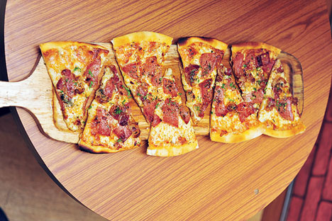 Meat Loaf Pizza: A meat-lover’s delight, this thin-crust pizza has bacon, ham, chicken sausages and salami with mozzarella cheese. Yum and filling, this one’s our fave. Rs 495-plus