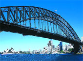 | The Sydney Harbour Bridge with the Opera House in the background |