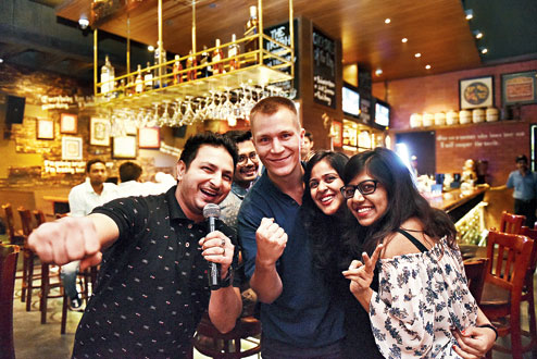 Ashok Singh, owner of Sports Bar, tucked away in a busy area of Salt Lake, decided to have games like Sip-Sip-Shot in which a group sits in a circle and a player taps people on the head to take a sip. Then someone calls “shot” and that person has to gulp a shot. The pub also organises the Name Game which is played in a large group and it begins with one player naming a celebrity. The next person has to name another whose name begins with the last letter of the previous celebrity’s name. Anybody who fails to rattle off the name immediately has to drink a shot. This game, Singh says, is a real ice-breaker: “It’s astonishing to see how even strangers bond. We’ve had guests who’ve come alone and joined a group playing. There’s so much interaction, they become friends.”