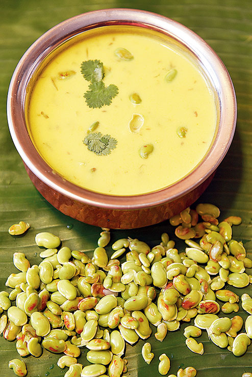 Chefs at Khandani Rajdhani make a variation of that — and that’s the lilva kadhi, prepared with a kind of green beans.