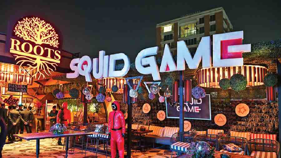 When you have a OTT theme there is no way we could miss SquidGame, one of the most popular shows on Netflix. The private rooftop lounge on the mezzanine floor of Roots was a dedicated Squid Game zone with minute details from the show.