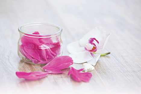 • Pour the distilled/boiled water in a container that can be heated. Pour the petals in. Cover the container and heat it at a very low temperature, so that the water does not boil.