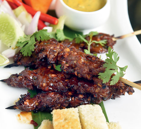 A signature of Chef Klae, this satay uses sticks of lemongrass as the base around which minced lamb flavoured with fish sauce, coriander, sugar, sesame, chopped onions and garlic is wrapped and then grilled. Each bite is a fresh one because of the aroma of the lemongrass.