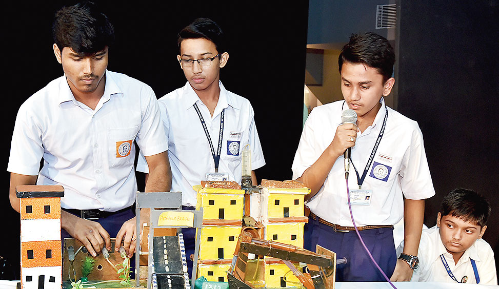 Students from eight schools in Calcutta recently showcased innovative science models in a competition held at the Calcutta University Institute Hall. The event commemorated the contribution of famous Bengali scientist Acharya Prafulla Chandra Ray in promoting indigenous scientific enterprise. The use of hydraulic press in different aspects of our life - such as in elevators, mechanical cranes, bridges and water pumps - was demonstrated by the award-winning team of Metropolitan Institution (Main).