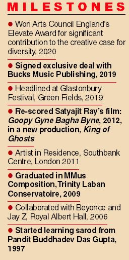 So even now, when I hear Beyonce or Jay Z playing on the radio, I’m taken back to the curved corridors of the Royal Albert Hall, London, where we stood in the wings waiting to go on stage, listening to the roar of a crowd in anticipation. A sarod is not what you’d expect to see in a mainstream, hip-hop concert. Neither is a tabla. But the Mercury award-winning tabla player Talvin Singh, who had taken me under his wing at that time, gave me a thumbs up as we stormed London’s largest stage with hip-hop royalty. And as the bass kicked in, Beyonce, flanked by dancers, embraced the spotlight, Jay Z ripped the mic off the stand and I looked around the auditorium, dazzling with camera flashes, to realise that this was the power of music — to bring worlds together, however disparate or unlikely. Looking back at it now, while Jay Z was making history, performing the first ever hip-hop concert at the Albert Hall, Talvin and I were making our own landmarks that night. We were breaking through the lines of genre, turning musical denominations on their heads and bringing ancient Indian instruments into a contemporary, global arena.