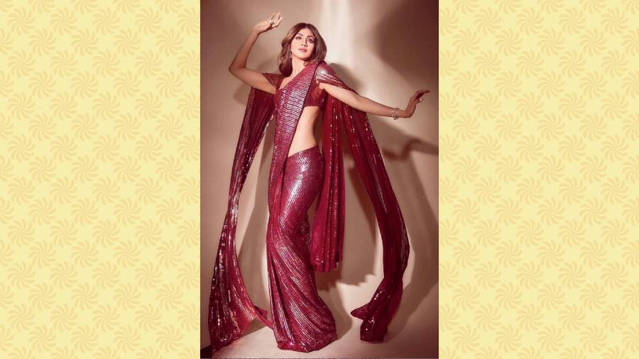 Nothing captures the essence of winter merry mood in fashion more than bling. Sequins, metallic outfits, accessories or make-up — there can be various ways of channelling the trend. One usually thinks of a sequinned dress to glam up for a party or any kind of celebration and we absolutely loved how Bolly hottie Nora Fatehi rocks a golden pantsuit with a mix-and-match of Indian jewellery and western accessories. A smart choice especially if you have an outdoor event to attend. The pantsuit will keep you covered and the bling will add glamour.