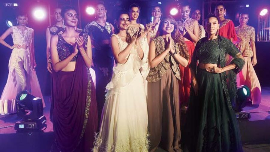 Rajdeep Ranawat came down from Delhi to showcase his ‘Sayuri’ collection that drew inspiration from Memoirs of a Geisha, at Playfest presented by Chivas glassware in association with The Telegraph. Lots of prints was the highlight of the range that was sent out at JW Marriott Kolkata’s Gold. The flowy separates and drapes had a resort-cool vibe, ideal picks for that holiday by the sea. The lehnga skirts were for the fun bride, ready to dance at her wedding.