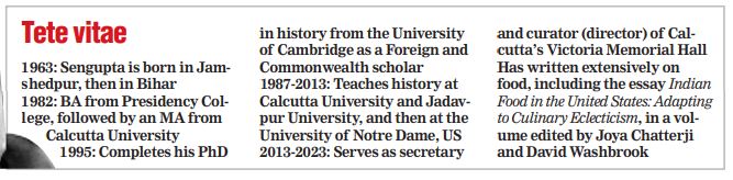 He straddles the worlds of art, academia, history and gastronomy with equal elan. The events organised by him as secretary and curator of Victoria Memorial Hall almost always ended on a sweet note with a perfect notun gur-er sandesh or a refreshing lebu sandesh, depending on what the season called for. In his office, one was invariably served a fine cup of Darjeeling tea and some crunchy nuts no matter how unsavoury the questions he might have had to field from the media. No wonder then that Jayanta Sengupta should retire with a book on food.