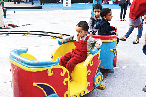 This mother-son duo — Simran Chopra and four-year-old Shaurya — made a stylish picture. Plaid was their pick of the day as Shaurya donned a black-and-red cap and his mother chose a blue-green jacket. “This is the time to rejoice. I have been coming to CC&FC for a couple of years now and Shaurya really enjoys his time here. So this is something we look forward to,” said Simran, a teacher at La Martiniere for Girls.