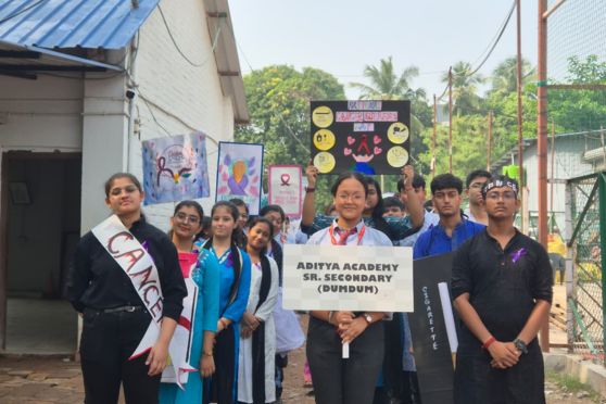 In a heartfelt initiative to mark National Cancer Awareness Day, the Interact Club of Aditya Academy Senior Secondary, Dumdum, organised a 3 km Silent Walkathon, followed by an Awareness Talk and a moving Nukkad Natak at Diamond Plaza Mall. The event aimed to spread awareness about cancer prevention, early detection, and community support in the fight against the disease.