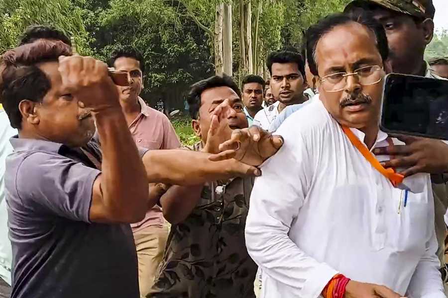 BJP candidate Suvendu Sarkar being allegedly manhandled while heading to a polling booth following reports of disturbances, during the first phase of the West Bengal Assembly elections, in Dakshin Dinajpur district, Thursday, April 23, 2026.