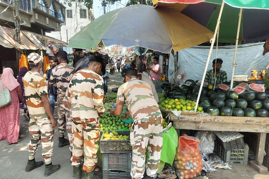 Central Armed Police Force personnel had taken over the area around Malancha bus stand, 45 km east of Kolkata. They were buying guavas, having coconut, while many others thronged the sweetshops across the fruit stalls. Their visit seemed to have led to an uptick in local business in the troubled zones of North 24 Parganas.