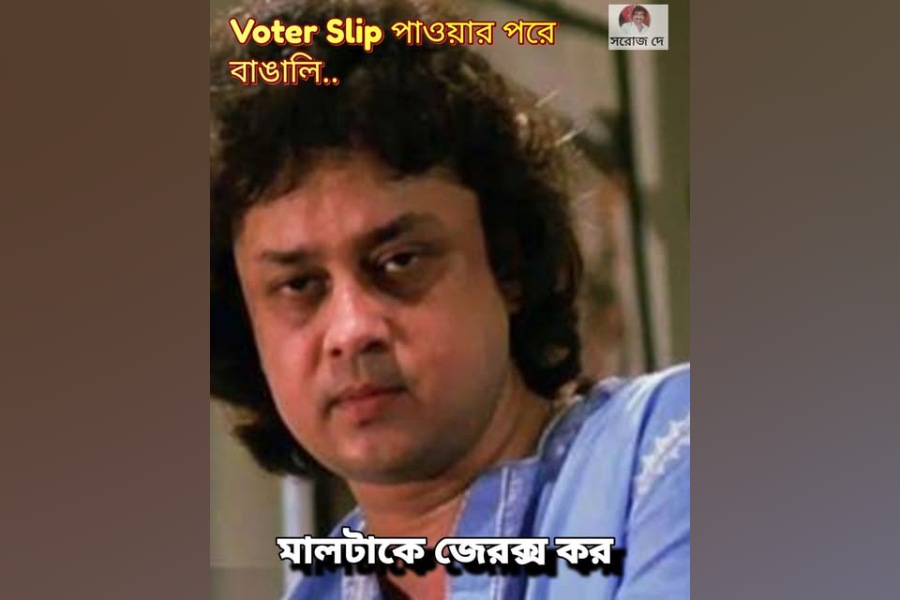 One user shared a still linked to Bengali actor Soumitra Banerjee's film Nawab with the writing, “Maal taake Xerox kor” (Photocopy the thing), adding, “Voter slip poawar por Bangali” (Bengalis after getting the voter slip). It references Banerjee's famous dialogue from the film “Maal taake gari te tol” (load him into the car).