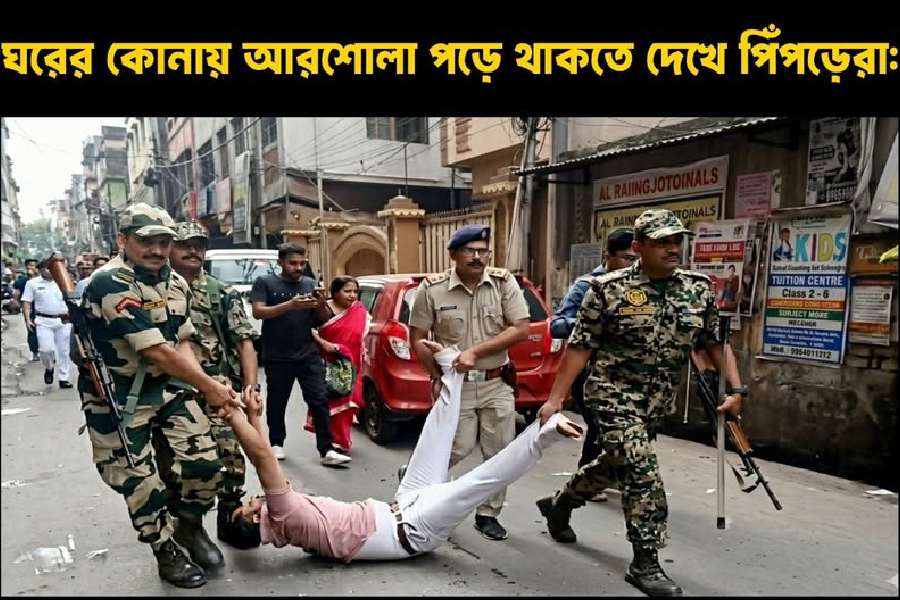 Security deployment also shows up in these posts. A meme page shared a picture of CRPF personnel dragging a man, with the caption, “Ants after spotting a cockroach lying in the corner of the house".