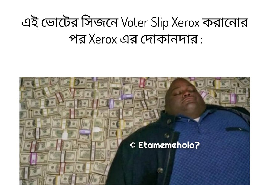 There is also humour around small businesses that see a rush during elections. One post shows a man sleeping on piles of cash with the line, “In this voting season, after photocopying voter slip, Xerox shop owner.”