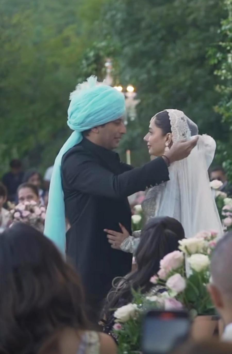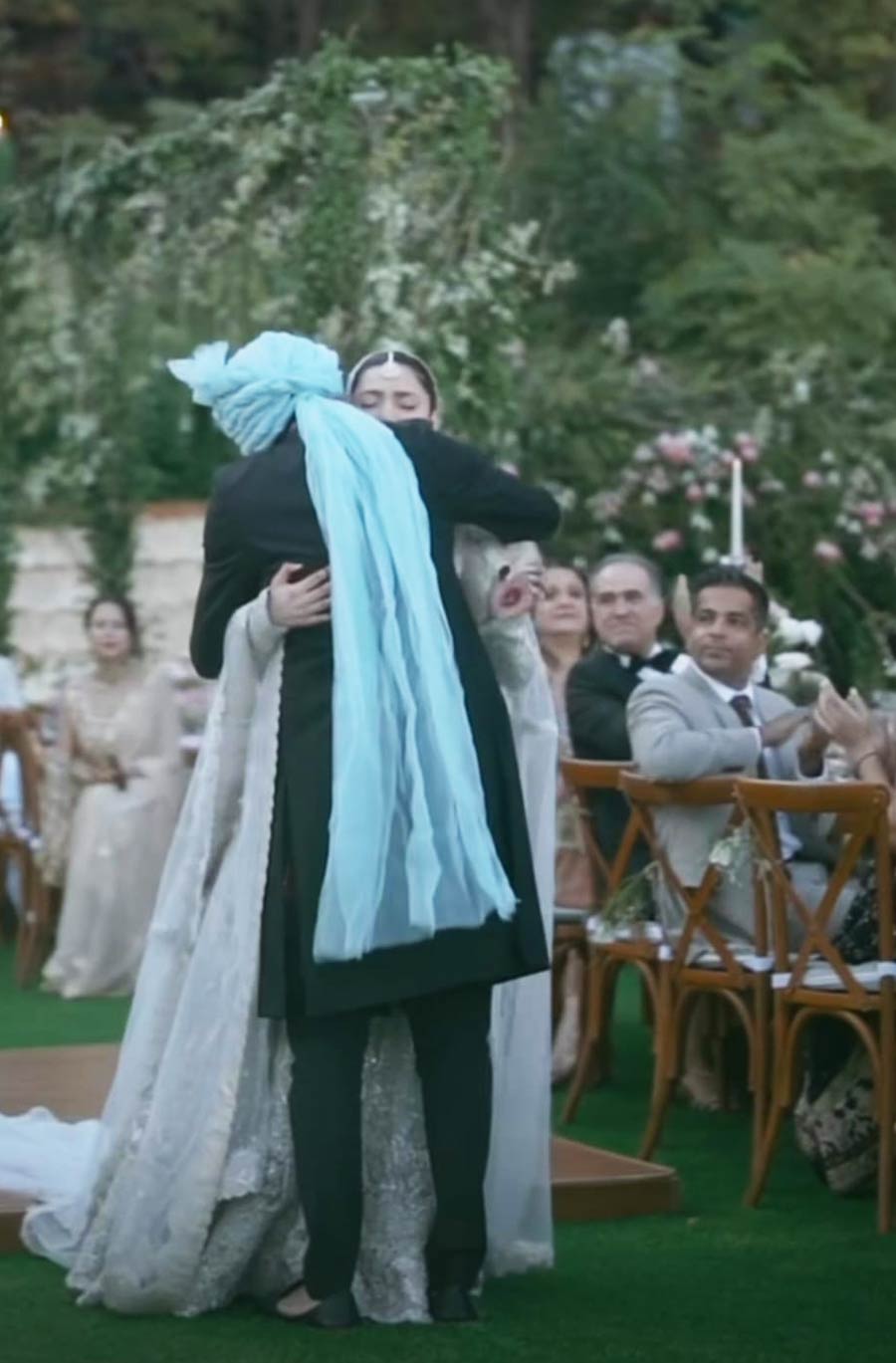 In a video clip shared by Mahira Khan's manager Anushay Talha Khan on Instagram, the groom can be seen lifting the veil and then embracing the bride.