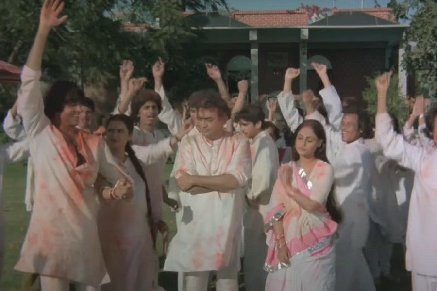 Whether it’s a small family celebration with gulal or a full-fledged colour splashing event with your friends, Amitabh Bachchan’s baritone voice in Rang Barse playing in the background will add to the intoxicating essence of Holi. Composed by Shiv-Hari and penned by Harivansh Rai Bachchan, this timeless classic from Silsila showcases ex-lovers Bachchan and Rekha’s palpable chemistry at a Holi gathering, where they cross paths with their respective partners, Jaya Bachchan and Sanjeev Kumar. Making for a festival favourite, the song features flirtatious exchanges and playful dance moves that create awkwardness for their partners.