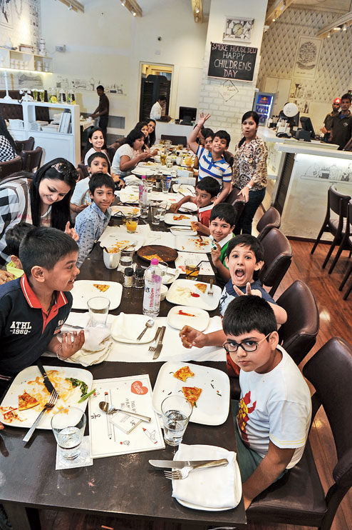 | Youngsters tuck into the kids’ menu. The restaurant also reached out to students of NGO Ektara to join in their celebrations. Pictures: Rashbehari Das |