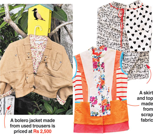 A three-day exhibition at Living Free, the eco-friendly store at 5 Leela Roy Sarani (near Ballygunge Kwality), recently showcased their range. The contemporary and quirky line of clothing for women included a bolero jacket made from used trousers, apart from tops, tunics, playsuits and skirts made with leftover scraps of fabric.