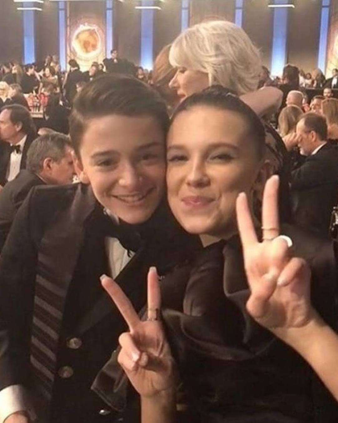 Another gush-worthy picture shared by the makers is Joe Keery wrapping his arms around Maya Hawke’s shoulders. In the series, Keery’s Steve Harrington has a crush on Hawke’s Robin, but eventually learns that she is a lesbian and accepts her sexuality. Their friendship and playful banter forms a major part of the show’s appeal.