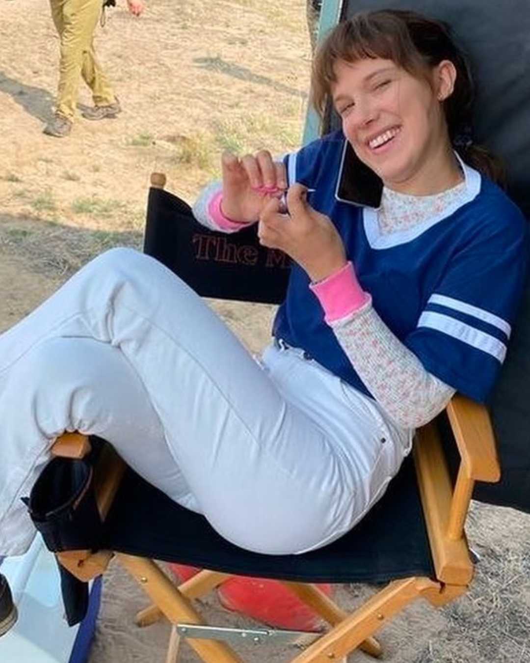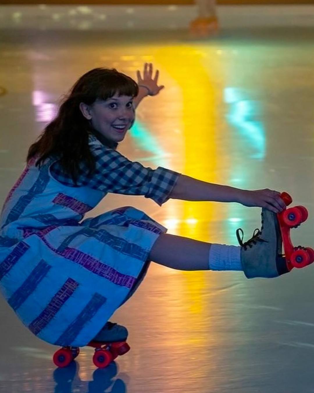 Millie enjoyed herself at an ice skating rink during the shoot for the fourth season of the series. The scene marked the beginning of Eleven’s teenage years as well as her camaraderie with Sadie Sink’s Max as the duo embraced their girlhood.
