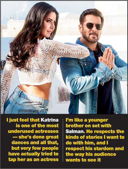 I just feel that Katrina is one of the most underused actresses — she’s done great dances and all that, but very few people have actually tried to tap her as an actress. I tried to do it in Mere Brother Ki Dulhan and it worked. I gave her a character that was close to her identity — a girl raised in London, little more boho in the way she looks at society in India and all that. In Tiger, she comes in with a very solid point of view about where she comes from, what she believes, how she would contribute to a mission this big. And I think she’s done a phenomenal job. She’s also gone through highs and lows in her career, and I think her maturity as an actor has really grown from when I worked with her last. As an actor, the more experience you have in your personal life, it begins to reflect in your work. I’ve known her for 10 years and she’s been one of my closest friends... and in this film I think she’s really worked hard on her character.