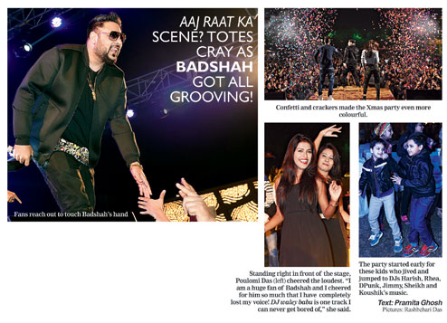 Calcutta had its first date with the “DJ Waley Babu” at Buzzin Nite, in association with t2, at P.C.Chandra Gold Acres on December 25. The party that kicked off early saw a fashion show and an opening set by DJ Sheikh. But just as Badshah had promised in his interview to t2, the loudest hoots and cheers came when the Aaj raat ka scene singer walked onto the stage at 10pm.