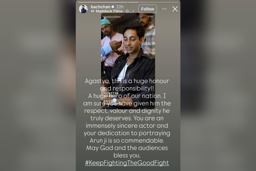 “Agastya, this is a huge honour and responsibilty!! A huge hero of our nation. I am sure you have given him the respect, valour and dignity he truly deserves,” Abhishek wrote on his Instagram story, resharing a behind-the-scenes video of Nanda from the sets of Ikkis.