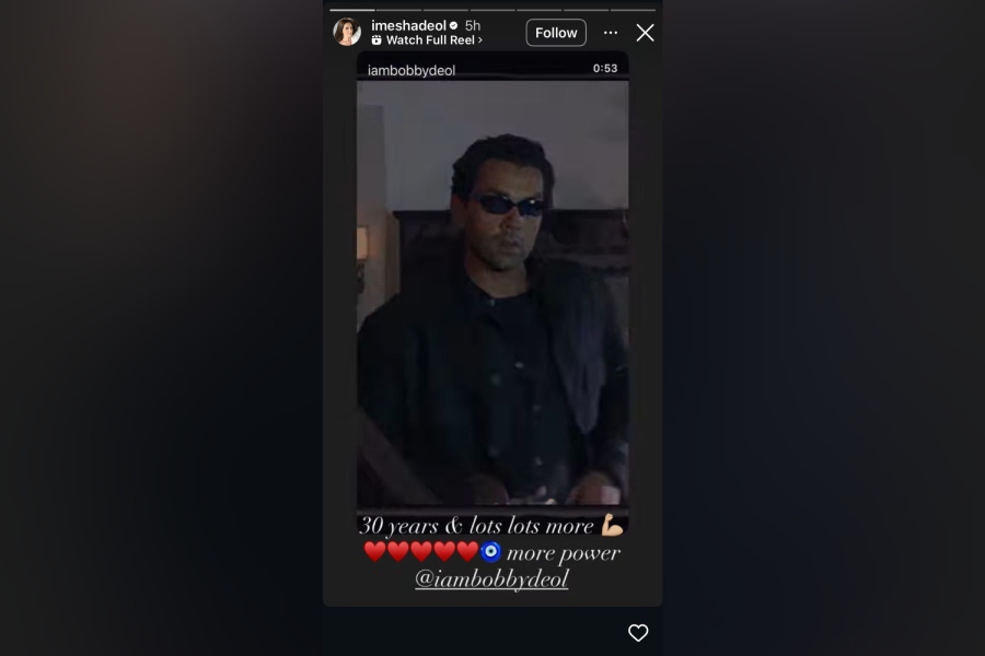 Esha Deol also extended her best wishes on her Instagram story and wrote, “30 years and lots lots more. More power @iambobbydeol.”