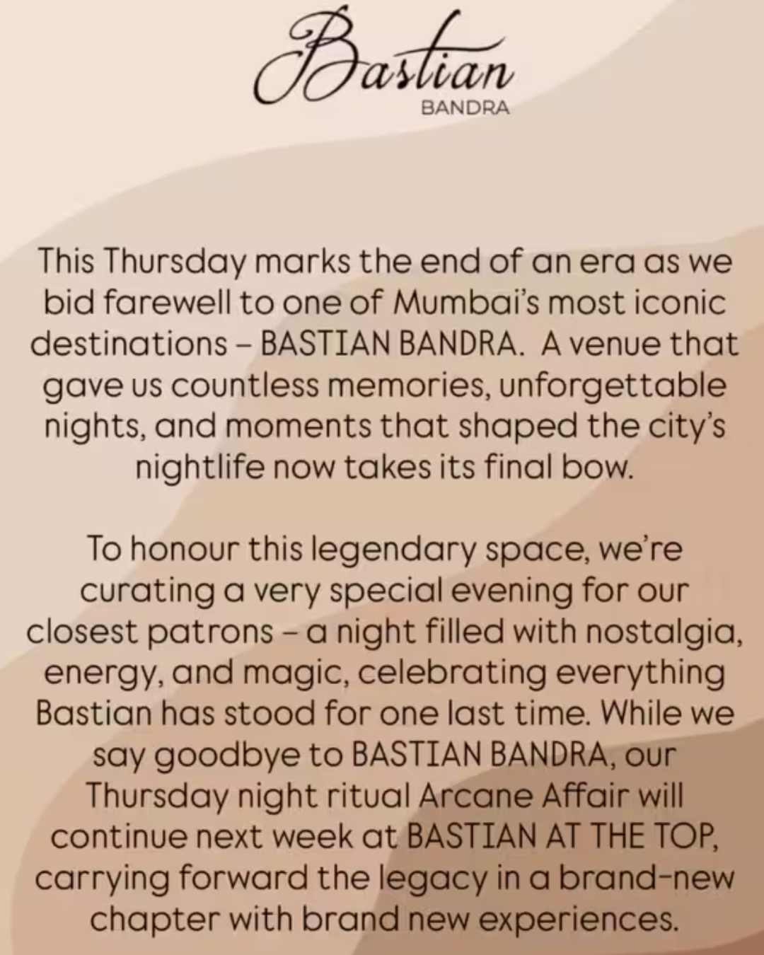 “This Thursday marks the end of an era as we bid farewell to one of Mumbai’s most iconic destinations — BASTIAN BANDRA. A venue that gave us countless memories, unforgettable nights, and moments that shaped the city’s nightlife now takes its final bow,” Shilpa wrote on Instagram.
