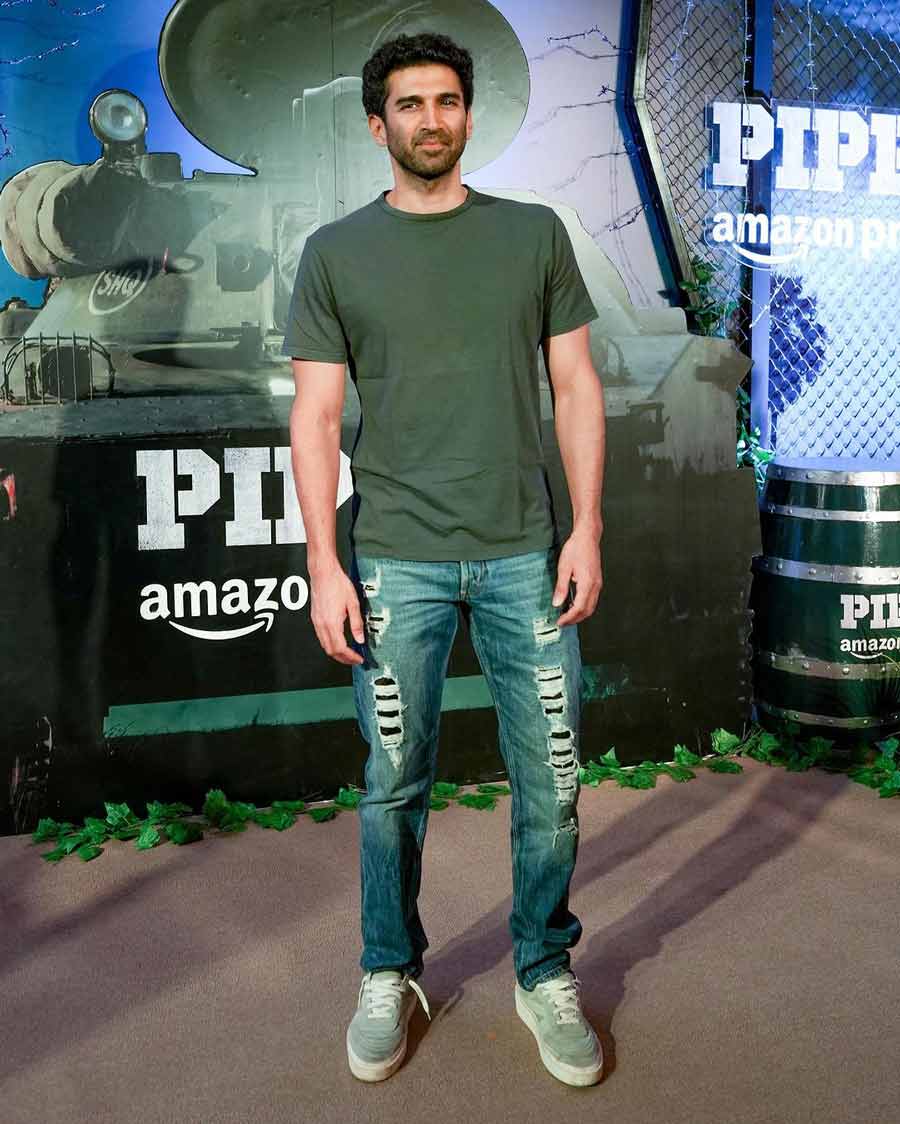 Aditya Roy Kapur sported a casual look — a solid grey t-shirt paired with ribbed jeans.