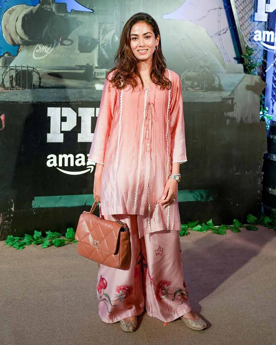 Mira Rajput looked elegant in a minimalistic look, pairing her pink suit with silver juttis.