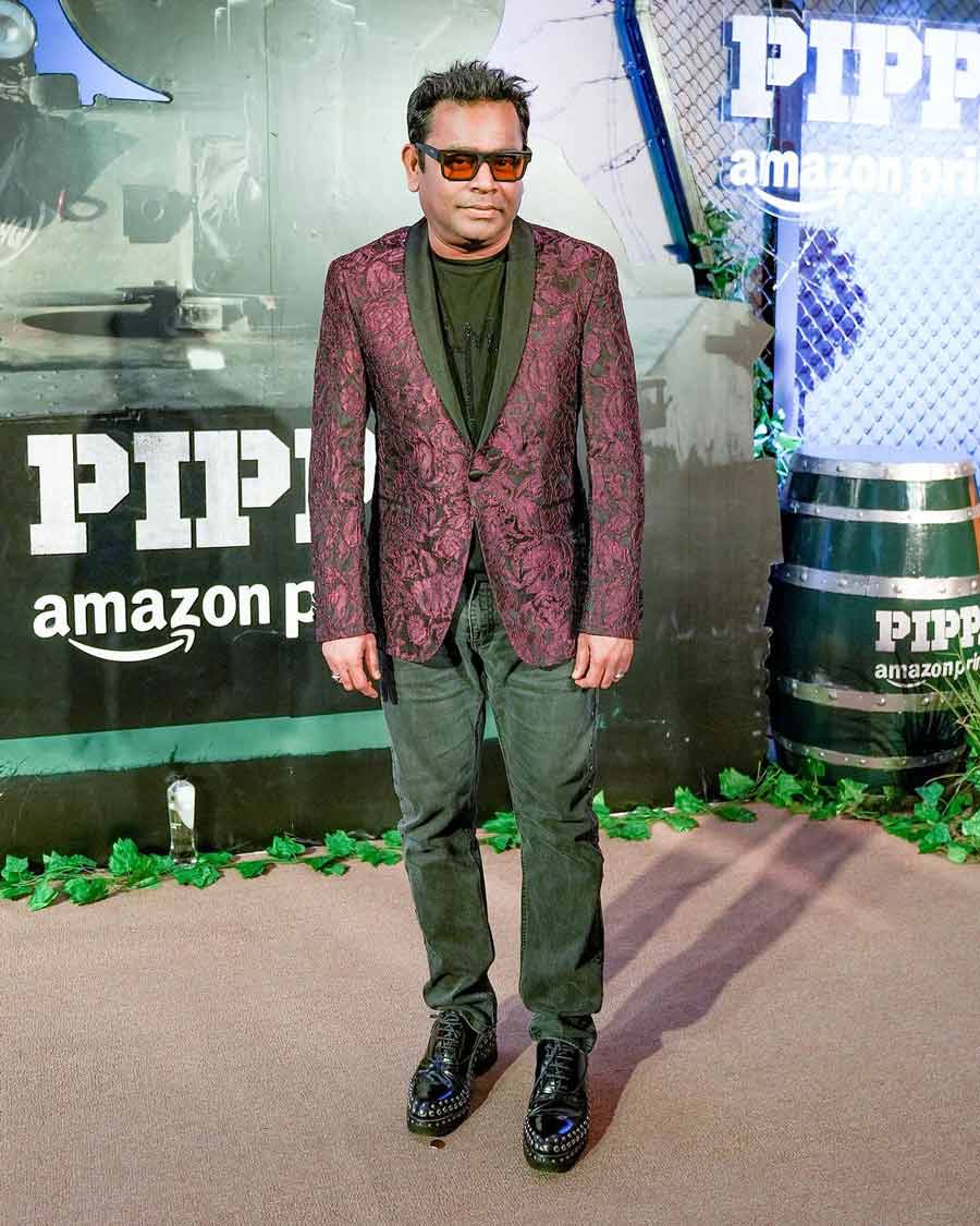 A.R. Rahman posed for the lens in a purple blazer paired with red shades and black boots.