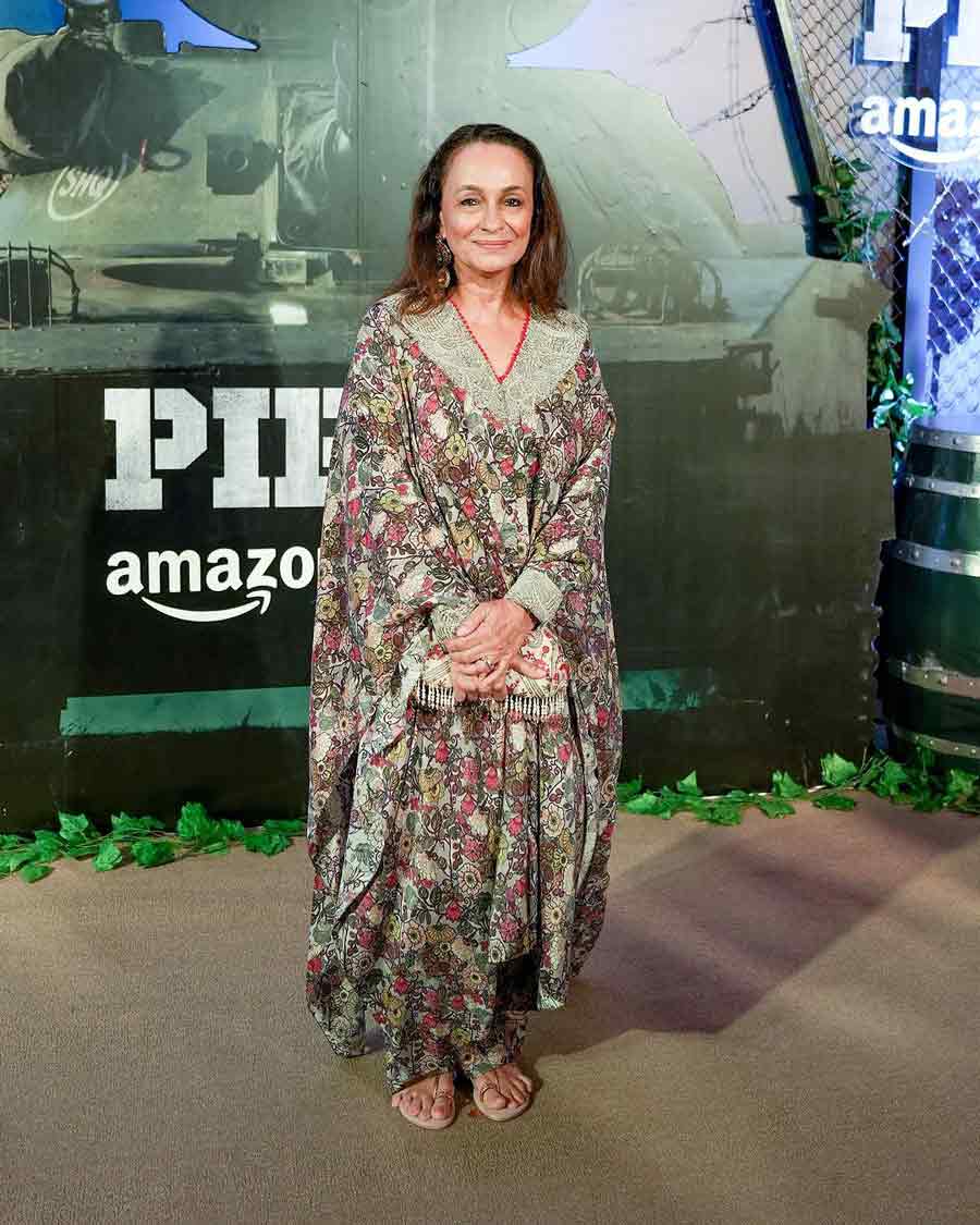 Soni Razdan, who was accompanied by daughter Shaheen and husband Mahesh Bhatt at the screening, looked radiant in a floral print Kaftan.