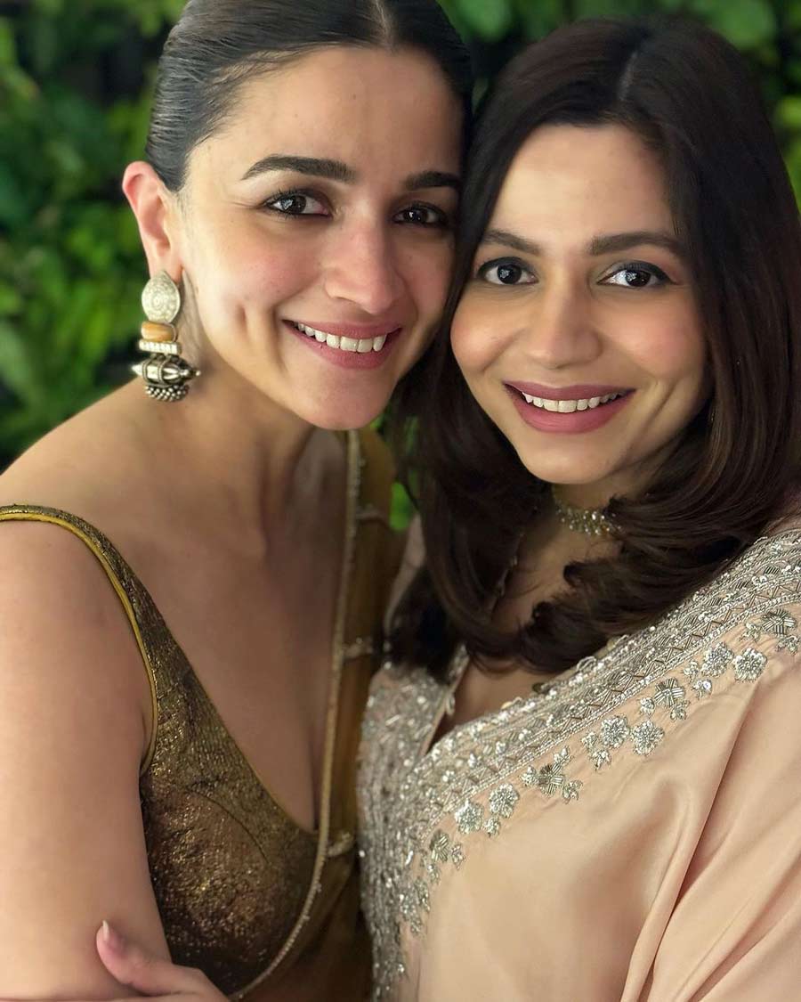 A picture shows Soni embracing Alia. A sleek bun and a bindi completed Alia’s look. Soni, on the other hand, sported a peach kurta.