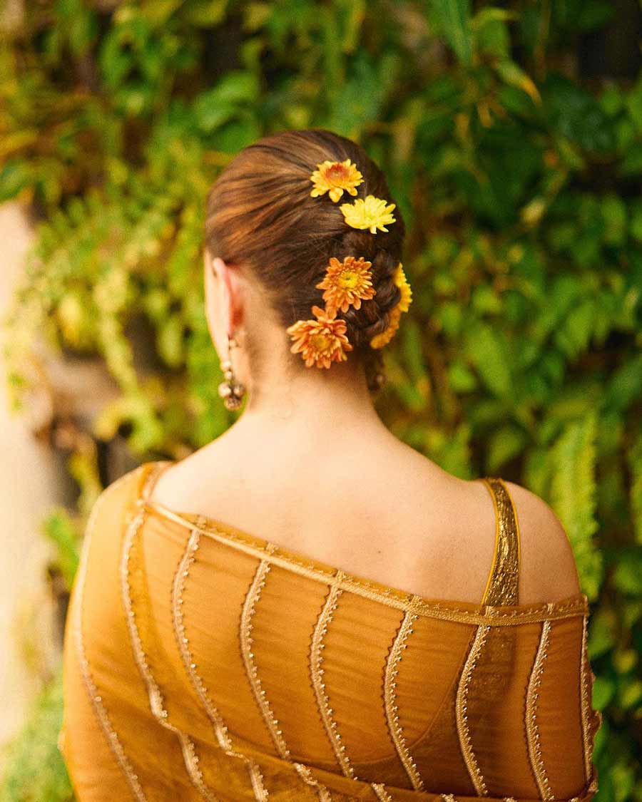 The 31-year-old actress adorned her bun with flowers. On the work front, Alia is set to headline YRF Spy Universe’s first female-led film Alpha alongside Sharvari Wagh.