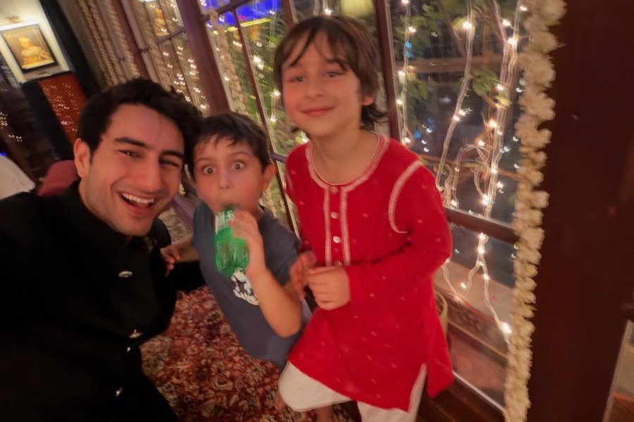 Ibrahim, son of Saif Ali Khan, beamed with joy alongside his brothers Taimur and Jeh, against a backdrop of fairy lights and festive décor.