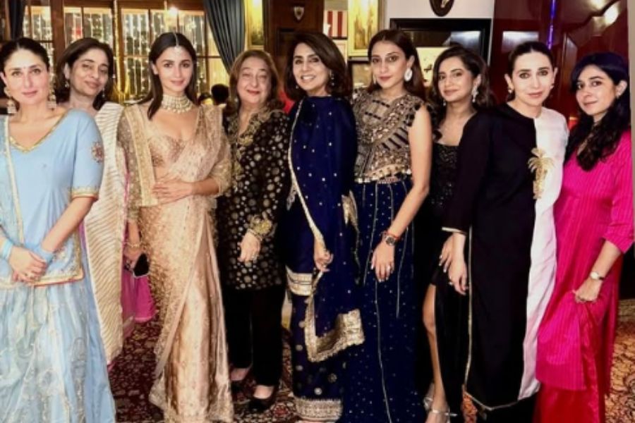 The Kapoor family gathered for a dazzling Dhanteras celebration filled with warmth and glamour. In one frame, Kareena Kapoor Khan, Karisma Kapoor, Alia Bhatt, and Neetu Kapoor posed together in elegant ethnic ensembles, joined by Rima Jain and other family members.