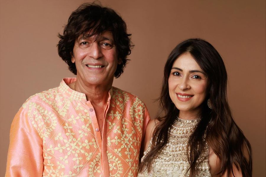 For Dhanteras, Chunky Panday sported a peach and gold embroidered kurta, while Bhavana Pandey donned a heavily embellished champagne-gold ethnic outfit with detailed embroidery, accessorised with statement jewellery.