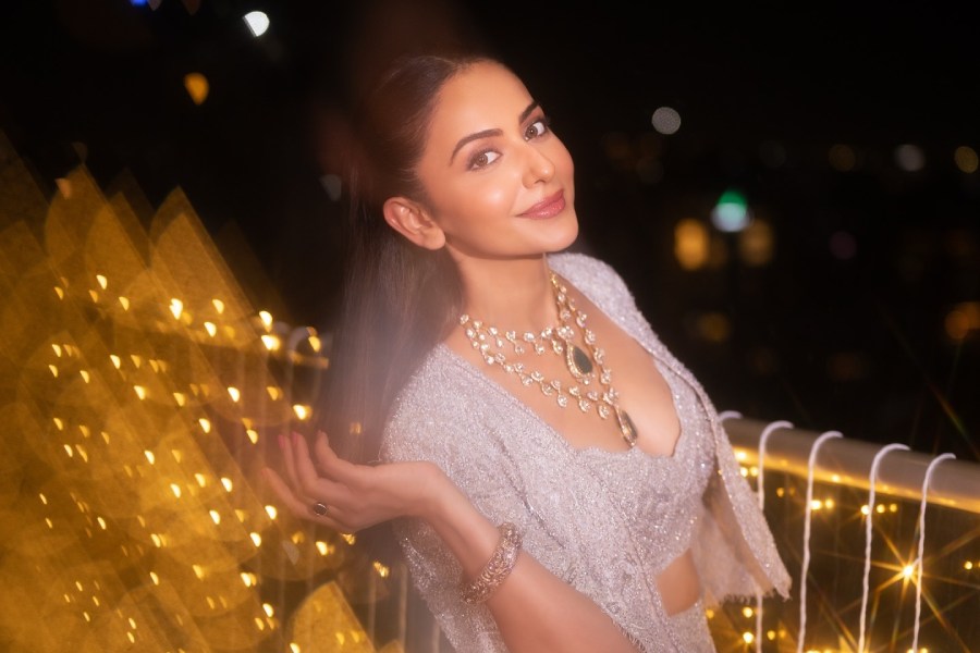 Dressed in a shimmering silver outfit adorned with layered jewellery, Rakul Preet Singh posed against a backdrop of fairy lights. “Feeling like a Patakha. Lag rahi hoon ki nahi,” she captioned her post.