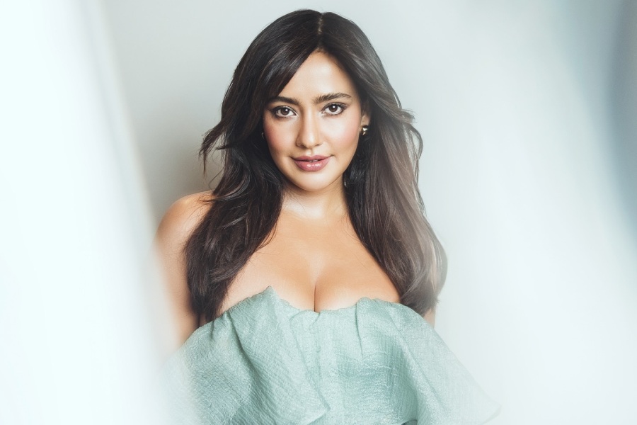 Bollywood actress Neha Sharma exuded grace in a soft green, off-shoulder ruffled dress. Radiating warmth and confidence, she posed against a dreamy backdrop, wishing her fans a Dhanteras full of “new beginnings”.