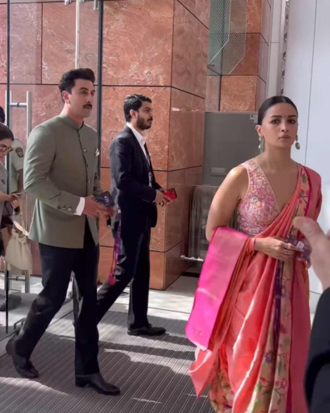 Alia was joined by her husband Ranbir at the summit. The Animal actor opted for a Jodhpuri-style olive coat and black trousers.