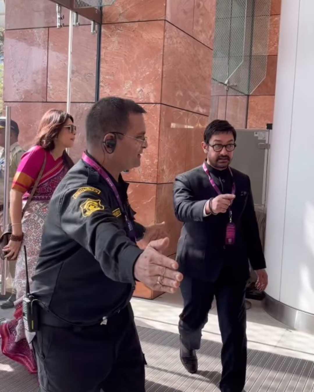 Aamir Khan arrived in style in an all-black ensemble. The actor is currently working on Sitaare Zameen Par, a sequel to his hit 2007 film Taare Zameen Par.